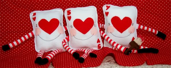 Então não é que no mês em que a Alice nasceu (Fevereiro), o site A Month of Softies, uma espécie de mega-craftsblog temático, propôs, como inspiração para os seus colaboradores, os dois livros mais conhecidos de Lewis Carroll? Pois é. Enquanto a nossa Alice ainda estava na barriga já muito grande, enquanto nascia no segundo piso do Hospital CUF Descobertas, enquanto aprendíamos a cuidar dela na maternidade, enquanto descobríamos (já em casa) as rotinas de uma vida a três, houve dezenas de pessoas a reinventarem, com tecidos, tesouras e agulhas, as várias personagens dos clássicos «Alice no País das Maravilhas» e «Alice do Outro Lado do Espelho». Eis alguns dos trabalhos seleccionados de que mais gostei: